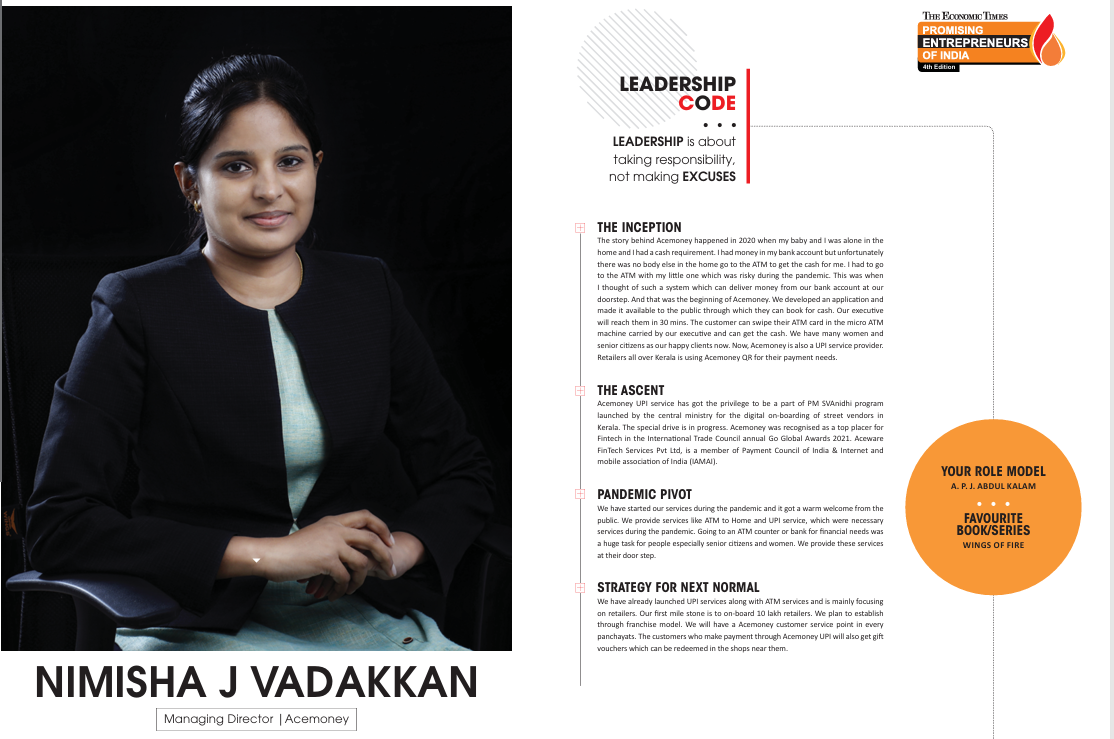 Leadership Spotlight - Nimisha J Vadakkan: A feature highlighting the leadership journey, vision, and impact behind Acemoney’s growth as a people-first, technology-driven financial services platform.